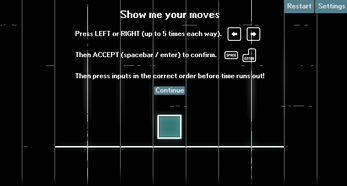 This game was made for GDKO Round 2. The theme was to create a multifunctional level or collection of levels that include quick time events. I really struggled to make this because of recovering from a surgery & only being able to work on a laptop during the jam! Hence, no SFX or music :(. That being said, it was still fun to make something that is so far outside of the types of games that I like to make / play.